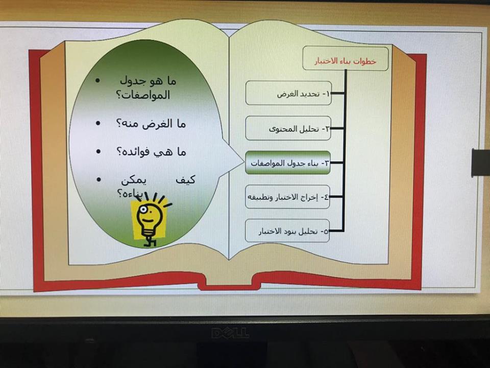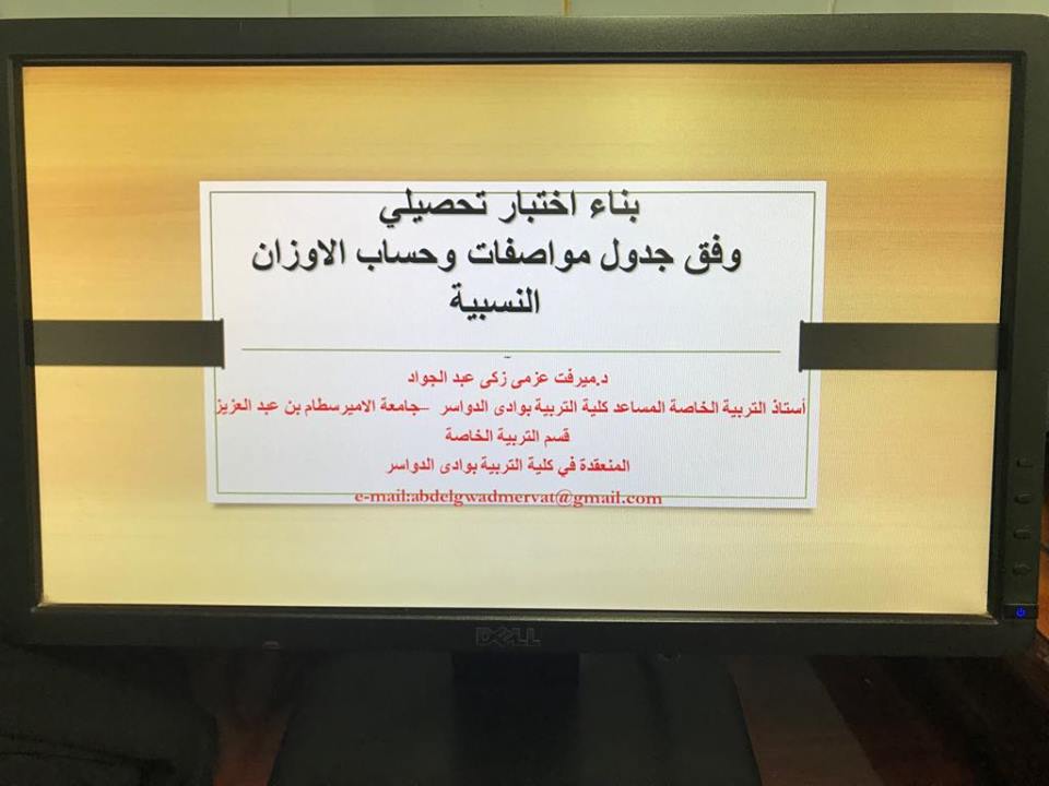 أقامت وحدة الجودة بكلية التربية بوادي الدواسر ورشة عمل بعنوان "بناء اختبار تحصيلي وفق جدول مواصفات وحساب الاوزان النسبية " وذلك يوم الثلاثاء الموافق 28/2/1440هـ ، الورشة من واعداد إلقاء د/ ميرفت عزمي زكي منسقة الجودة بقسم التربية الخاصة ، وقد حضر الورشة عدد من أعضاء هيئة التدريس . وقد هدفت ورشة العمل إلي اكتساب بعض المهارات الأساسية في صياغة أسئلة الاختبار التحصيلي ، وكذلك اكتساب مهارة إجراء الاختبار و تصميم جدول مواصفات ومكوناته والغرض منه وخطوات بناء جدول المواصفات ، كما تضمنت الورشة مناقشات علمية هادفة بين أعضاء هيئة التدريس انبثقت من خلالها أفكارا علمية بناءه ، وتضمنت كذلك أوراق عمل قام المتدربين بحلها ومناقشتها مع المتدربة.