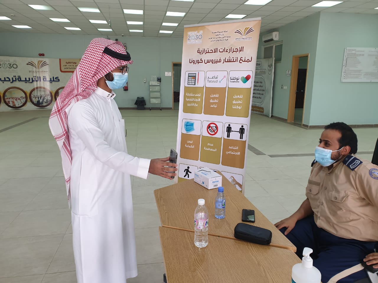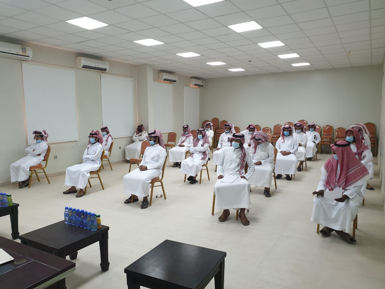 عقد عميد الكلية د. ماجد بن علي الشريدة لقاء بطلاب التدريب الميداني اليوم الأحد الموافق 28 / 1 / 1443هـ بمسرح الكلية مع أخذ الإجراءات الاحترازية اللازمة ضد جائحة فيروس كورونا Covid 19 ، وذلك ضمن برنامج تنشيطي لطلاب التدريب الميداني .